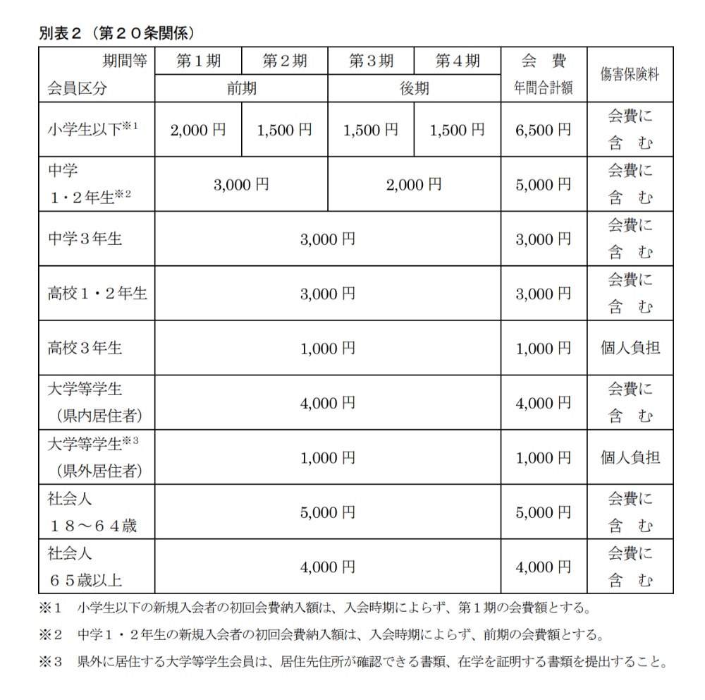 ・入会第1回目の会費は、指導者の案内を受けてからお支払いください。